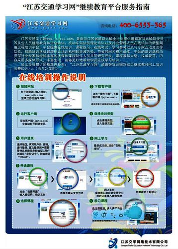 (二)加强宣传贯彻。各县、区运管所和市处相关部门要把推广使用网上培训的目的、意义以及便民举措通过各种途径全面宣传到运输企业和广大道路运输驾驶员,宣传范围要全覆盖,要在运政服务大厅醒目位置悬挂宣传服务指南并向办理业务的驾驶员和运输企业代表发放宣传彩页,处相关科室要充分利用各种舆论媒体,加大宣传力度,使广大道路运输驾驶员了解使用“江苏交通学习网”进行远程继续教育学习的便捷性,市处从业人员管理科要在发放证件时,应向新培训的从业人员附送网上培训服务指南等。